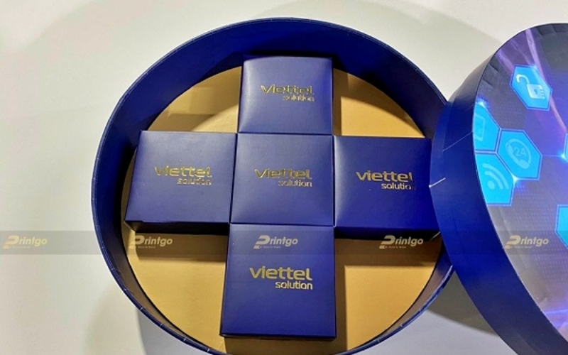 - Ép kim – bế nổi: Làm cho logo hoặc hoạ tiết được nổi bật bằng lớp kim loại ánh vàng, bạc, đồng…, tăng giá trị thẩm mỹ và cảm giác cao cấp cho chiếc hộp.