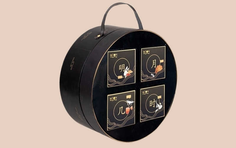 Mẫu hộp trung thu hình tròn 4 bánh là dòng phổ biến nhất trên thị trường hiện nay. Thiết kế tròn lớn, chia ô gọn gàng giúp việc bảo quản bánh luôn an toàn và gọn đẹp. Với diện tích mặt hộp lớn, doanh nghiệp có nhiều không gian để thể hiện họa tiết, logo thương hiệu hoặc tạo hiệu ứng 3D, ép kim nổi bật giữa nền giấy mỹ thuật. Đây là sự kết hợp hoàn hảo giữa truyền thống và hiện đại, rất được các doanh nghiệp sản xuất bánh trung thu cao cấp ưa chuộng.