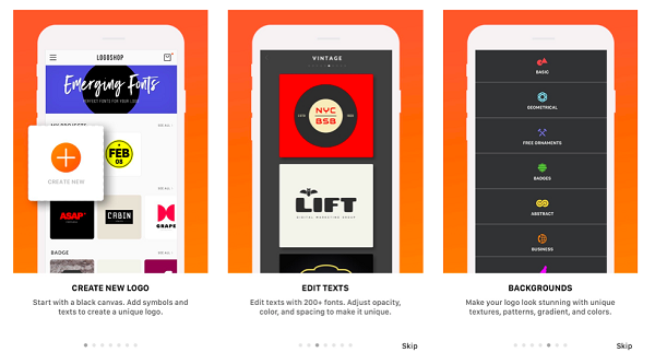 Những người thích phong cách tối giản sẽ yêu thích app thiết kế logo này. Không chỉ có nhiều mẫu sẵn mà người dùng có thể tự sáng tạo, vẽ ra các hình dáng, biểu tượng của riêng mình.