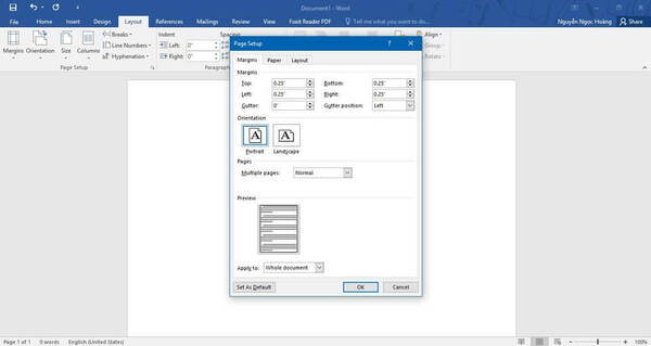 Bước 1: Thiết lập tài liệu trong Word