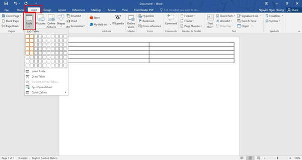 Bước 2: Thực hiện chèn bảng