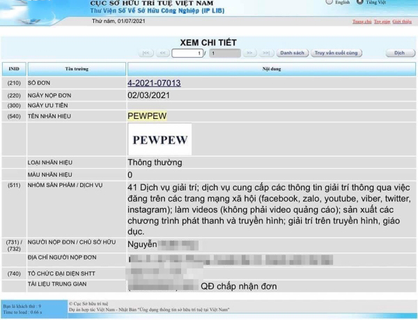 Hồ sơ đăng ký của chủ kênh sẽ được thẩm định hình thức, đăng công báo và thẩm định nội dung. Sau đó Cục Sở hữu trí tuệ sẽ ra thông báo xem hồ sơ đó có được cấp giấy chứng nhận đăng ký thương hiệu độc quyền hay không.