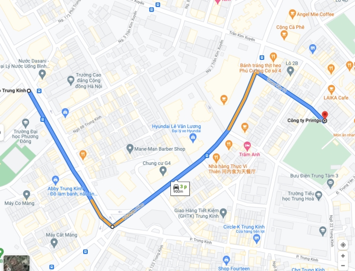 Khách hàng di chuyển đến Printgo từ đường Trung Kính theo hướng sang Trần Duy Hưng có thể tham khảo hướng dẫn:
