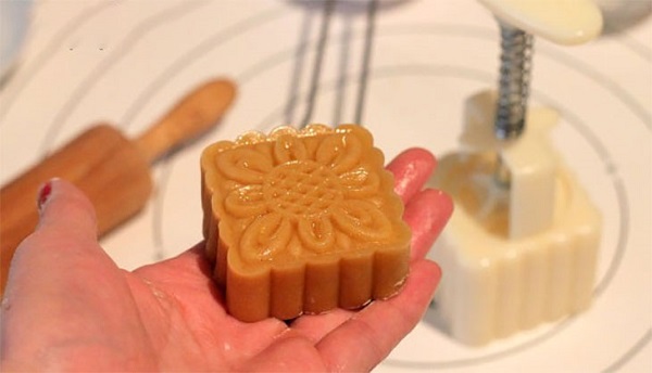 Bước này bạn cần có khuôn bánh, và phết một lớp dầu ăn mỏng vào bên trong. Tiếp theo, cho từng viên bánh trung thu đã được bọc tròn vào trong khuôn và ấn nhẹ.Cuối cùng, để khuôn xuống mặt phẳng tay giữ cố định tay kia cần ấn một lực vừa đủ để tạo độ nét cho các chi tiết trên mặt bánh trung thu.