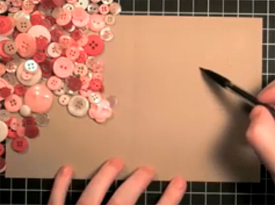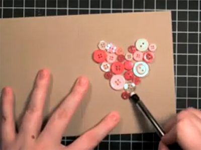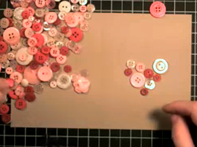 Bước 3: Chuẩn bị khuy áo nhiều màu sắc, kích cỡ để xếp lên hình trái tim đã vẽ.