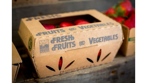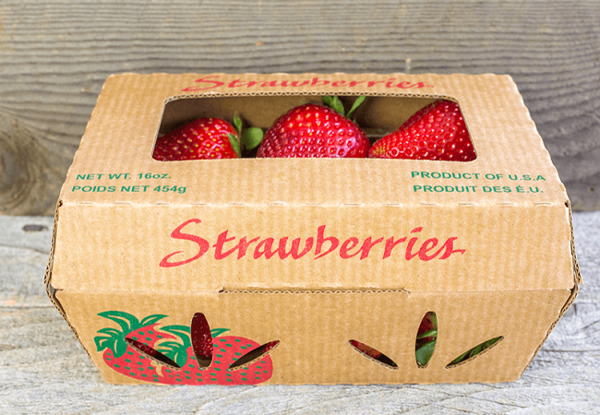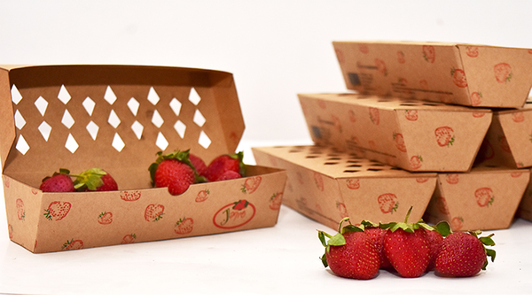 Mẫu hộp giấy đựng dâu tây được làm bằng chất liệu carton sóng