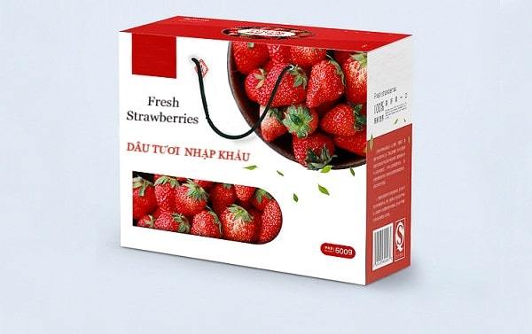 Mẫu hộp giấy đựng dâu tây có quai xách tiện lợi
