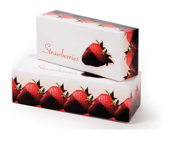 Mẫu hộp giấy đựng dâu tây được thiết kế với hình ảnh chân thực