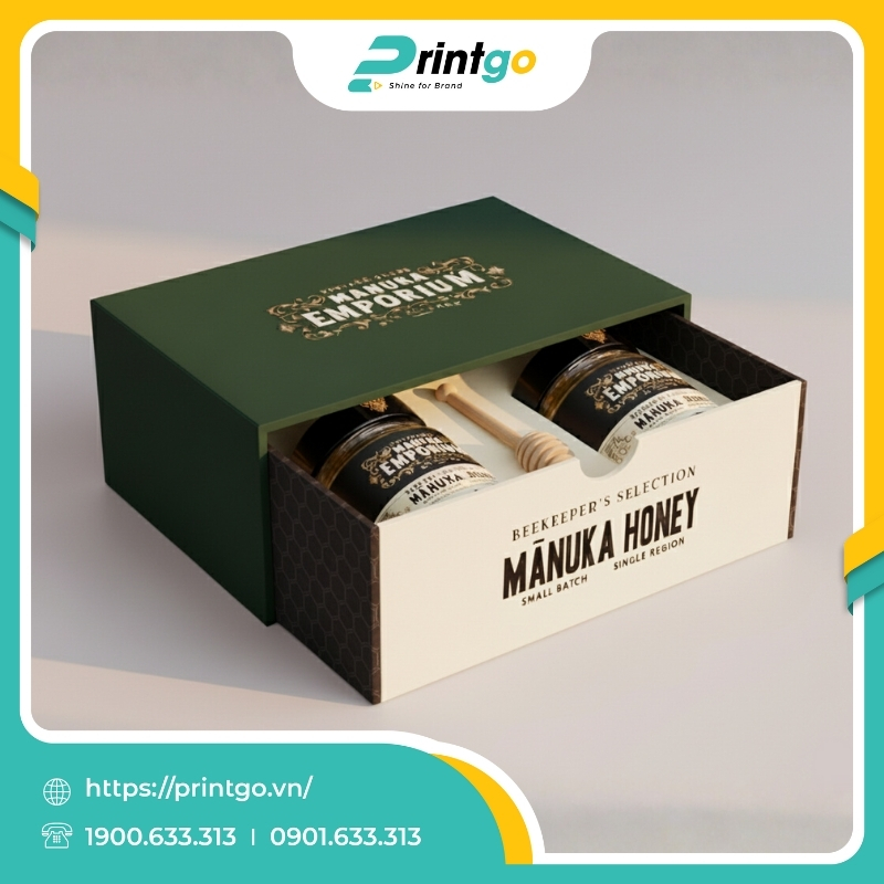Printgo x ASUS: In hộp cứng nam châm đựng mật ong sang trọng, cao cấp
