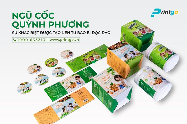 Bộ bao bì hộp giấy ngũ cốc của thương hiệu ngũ cốc Quỳnh Phương do Printgo thực hiện