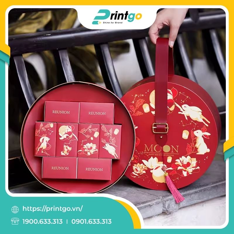 In hộp cứng có quai xách đựng bánh trung thu cao cấp