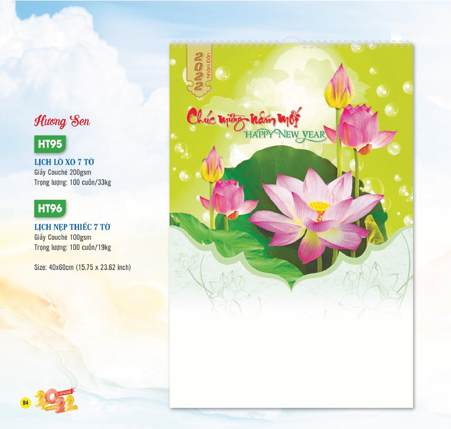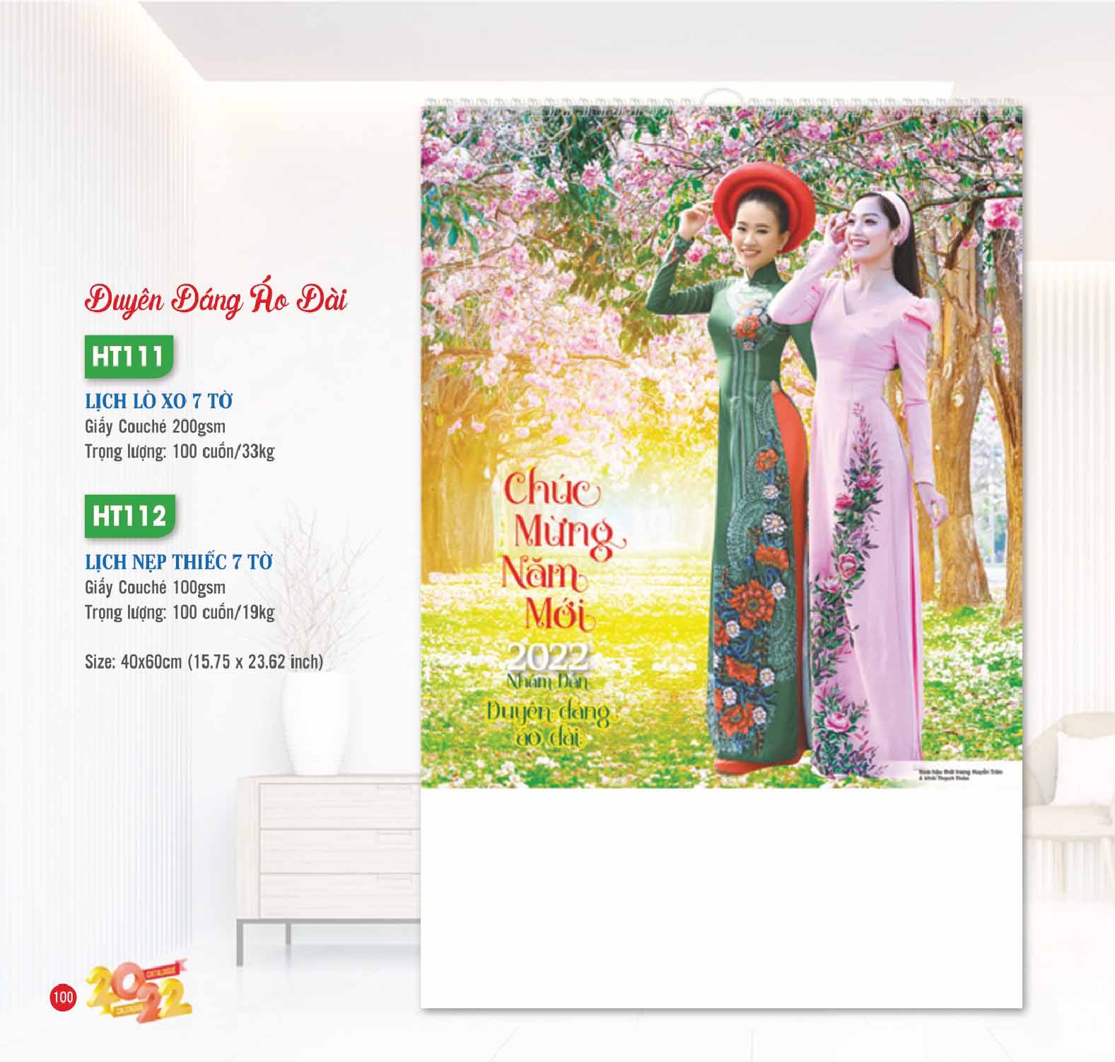 Lịch treo tường: bao gồm các loại lịch 1, 5, 7, 13 tờ là chủ yếu. Mẫu lịch này được thiết kế đóng đinh treo tường. Các loại 5, 7, 13 sẽ được cố định bằng nẹp hoặc lò xo để thuận tiện trong việc sử dụng.