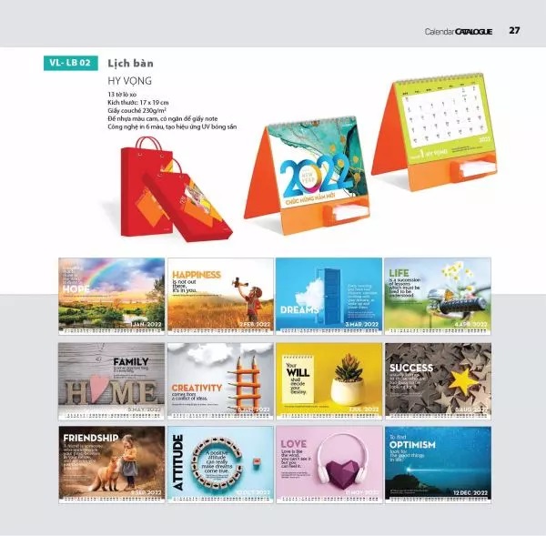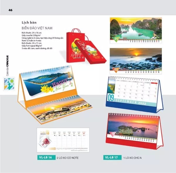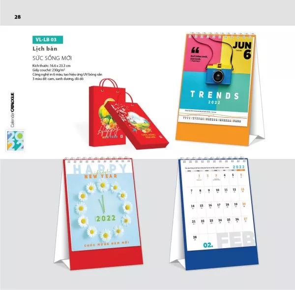 Lịch để bàn: hướng đến đối tượng là dân văn phòng. Lịch để bàn được in mặt, gồm chữ A hoặc mẫu chữ M.