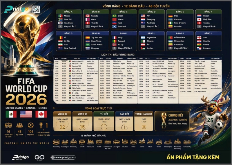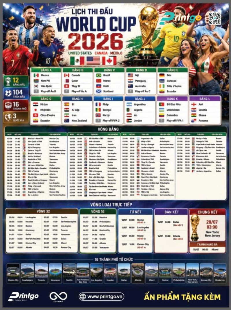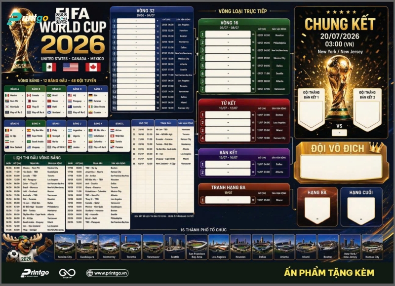 Thời gian chỉ còn tính bằng tuần. Đừng để lỡ mất "thời điểm vàng" để tiếp cận hàng triệu khách hàng tiềm năng. Hãy tải bộ file in lịch thi đấu World Cup 2026 miễn phí và liên hệ với Printgo ngay hôm nay để nhận báo giá ưu đãi nhất. Đội ngũ chuyên gia của chúng tôi luôn sẵn sàng tư vấn chi tiết về chất liệu và kích thước in lịch thi đấu bóng đá World Cup phù hợp nhất với ngân sách của bạn!