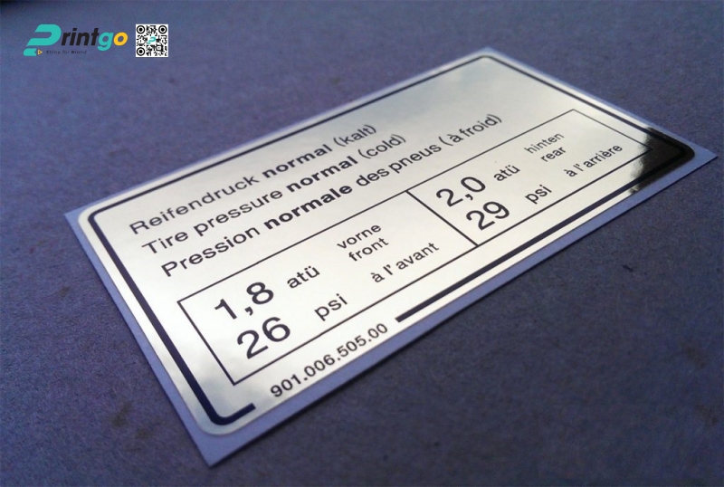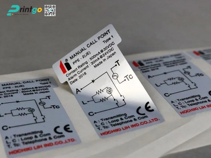 | Tem bạc thiếc | Bề mặt bạc sáng, cứng hơn, thiên về độ bền | Phù hợp in nội dung dạng vector, thông số kỹ thuật | Máy móc, thiết bị công nghiệp, tem thông số |