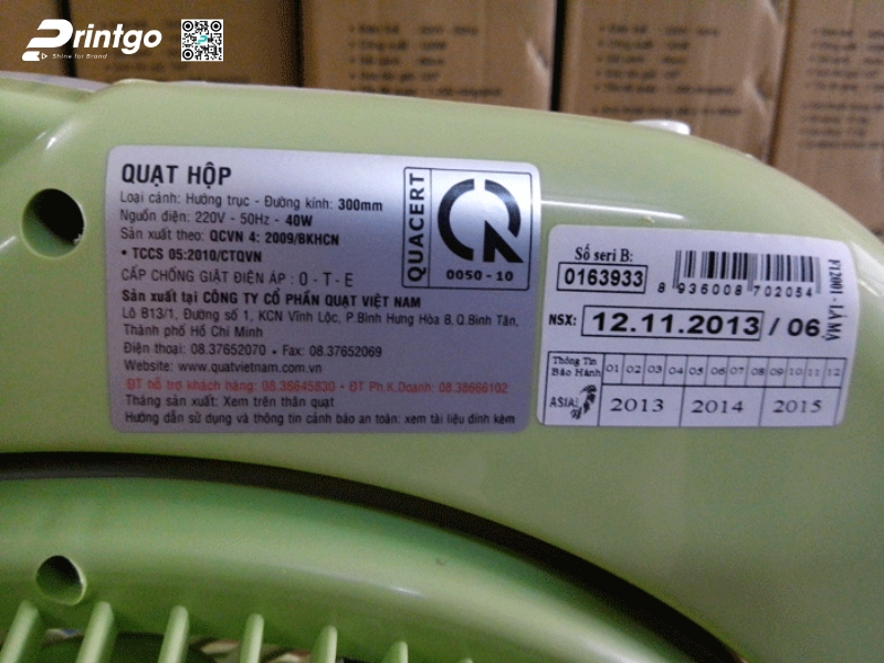Tem chứa thông tin kỹ thuật quan trọng : Đảm bảo các nội dung như mã QR, thông số, tem bảo hành luôn rõ ràng và dễ nhận diện.