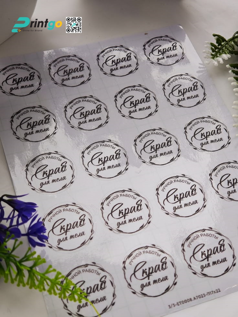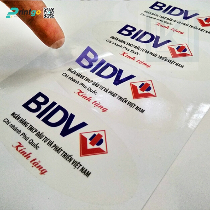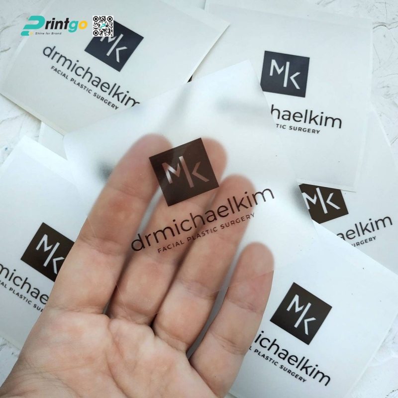 Decal nhựa trong suốt: Cho hiệu ứng trong suốt, giúp nội dung in nổi bật mà vẫn giữ nguyên màu nền sản phẩm, phù hợp với bao bì cao cấp.