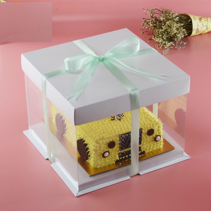Mẫu hộp nhựa trong suốt nơ cài xanh