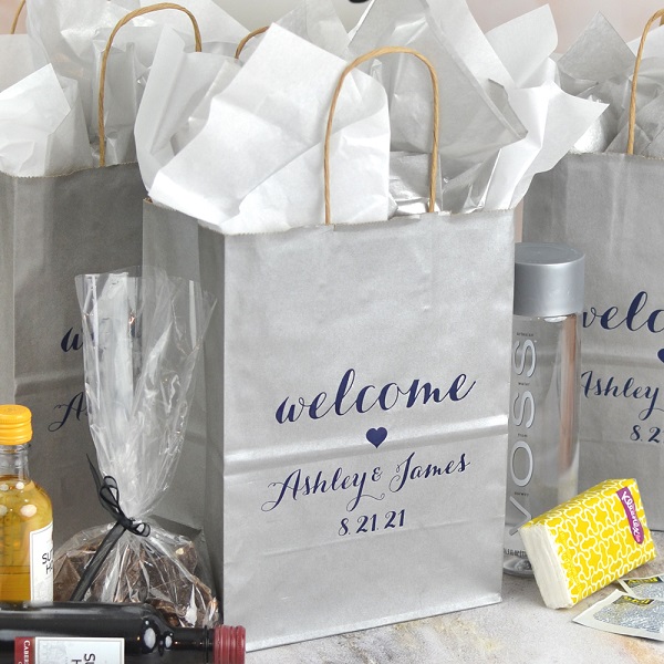 Mẫu túi giấy với tông màu bạc sang trọng được in thông điệp gửi đến người nhận