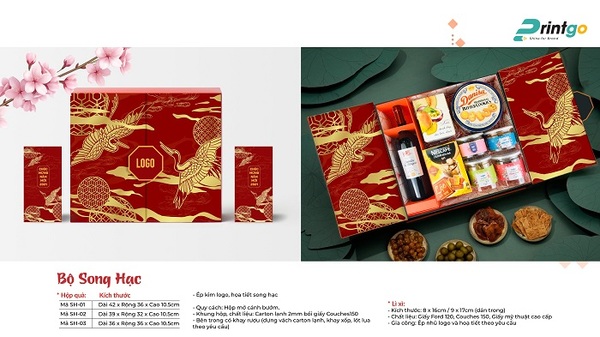 Bộ hộp quà tết Song Hạc quy cách hợp nắp mở cánh bướm độc đáo
