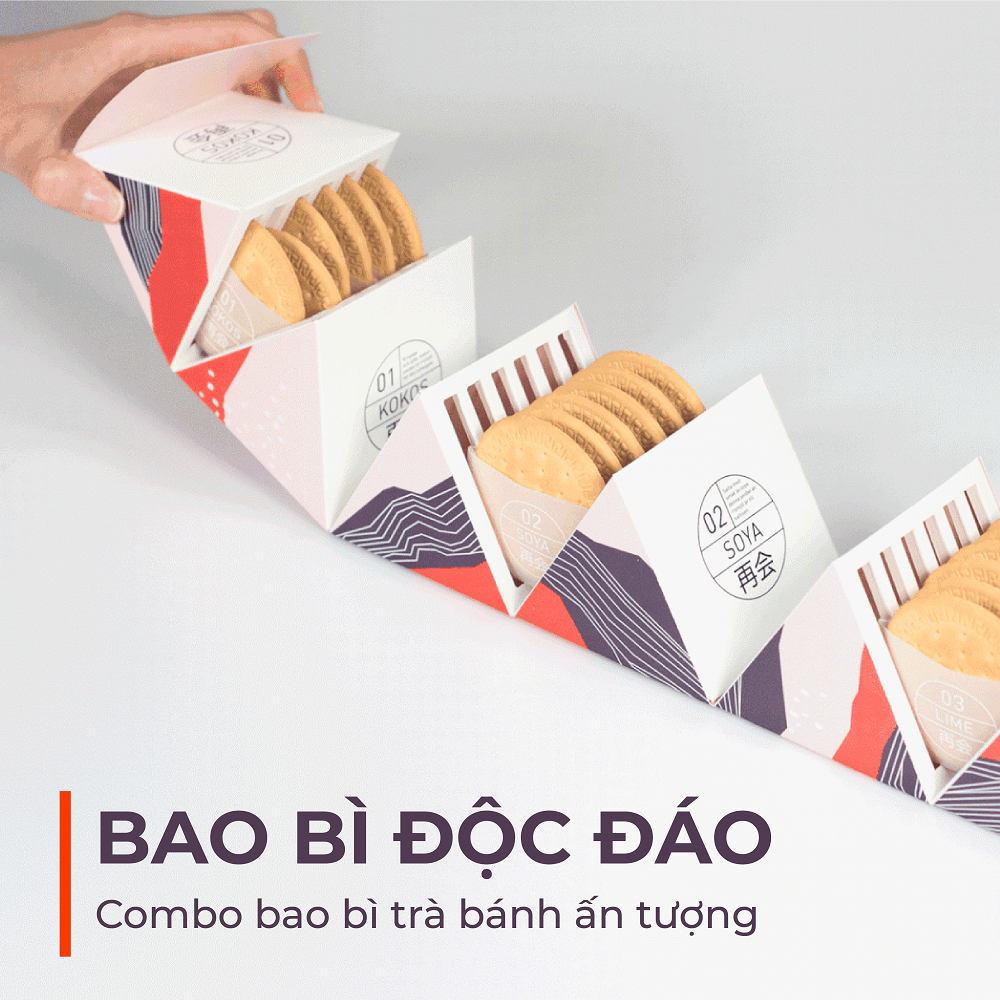 Mẫu combo bao bì trà bánh ấn tượng