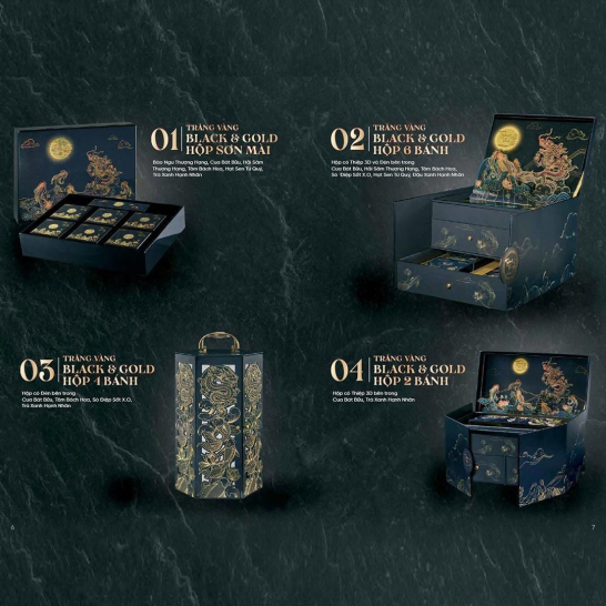 Với những nguyên liệu thượng hạng, quý hiếm có chọn lọc được chế biến bởi bàn tay tinh tế, khéo léo của những nghệ nhân làm bánh lâu năm, người nhận có thể cảm nhận được sự kỳ công trong từng miếng bánh. Trăng vàng được thiết kế dạng hộp sơn mài với giấy cao cấp kết hợp hoa văn, họa tiết đẹp mắt sang trọng. Những hộp bánh trung thu sang trọng về mặt hình thức, chất lượng về sản phẩm thay cho lời chúc ý nghĩa “an khang" gửi tới sếp, đối tác.