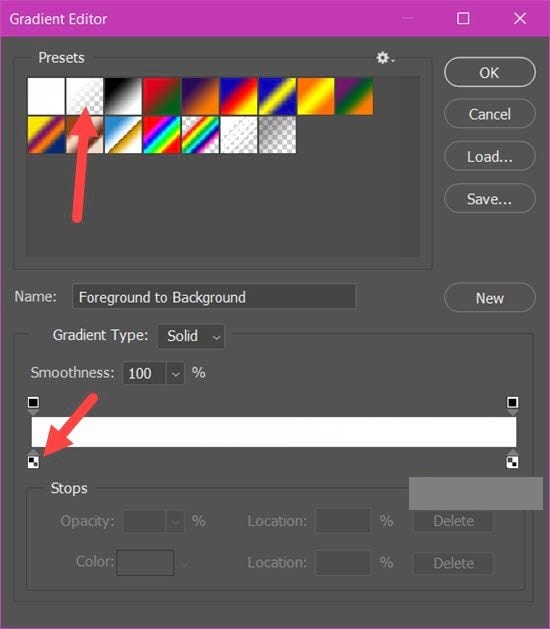 Bước 12: Sử dụng công cụ Gradient vừa nãy kèo một đường từ trái sang phải theo hình mũi tên sẽ được kết quả như dưới.
