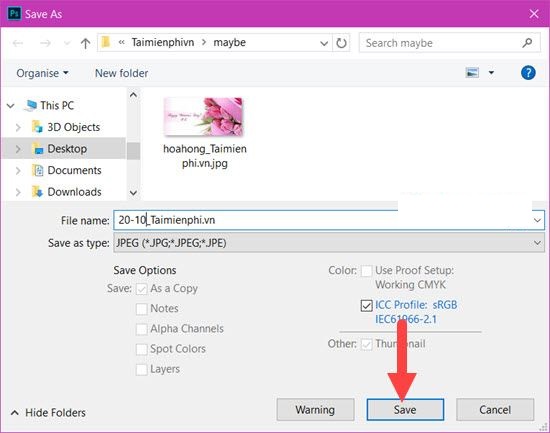Bước 15: Lựa chọn vị trí save cho file. Cuối cùng việc làm thiệp 20-10 đẹp bằng Photoshop đã hoàn thành rồi đó.