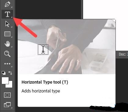 Bước 3: Đầu tiên hãy nhấn phím tắt T hoặc tìm vị trí có chữ T (Text) để sử dụng công cụ gõ chữ trên Photoshop.