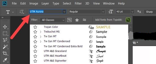 Bước 4: Nhìn lên phía trên sẽ có một thanh công cụ xuất hiện, nhấn vào đó bạn có thể lựa chọn một font chữ mà mình muốn.