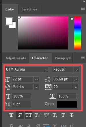 Bước 7: Nó sẽ được kích hoạt và hiển thị bên tay phải, lúc này bạn có thể chỉnh font chữ, cỡ chữ, khoảng cách tùy theo ý bạn.