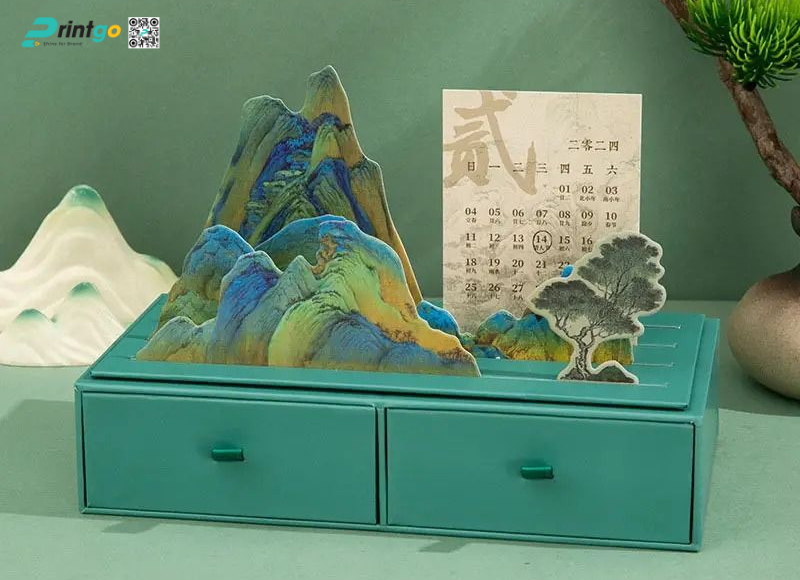 - Thiết kế sáng tạo, thu hút: Cấu trúc nổi nhiều lớp tạo hiệu ứng thị giác sống động, giúp lịch trở thành điểm nhấn nổi bật trên bàn làm việc, thể hiện sự sáng tạo và gu thẩm mỹ của doanh nghiệp.