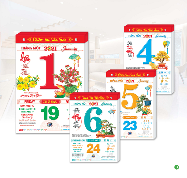 Bên cạnh đó, những bức tranh và hình ảnh về non nước, phong cảnh quê hương sẽ được thêm vào nhằm trang trí cho tờ lịch trở nên sinh động và đẹp mắt hơn.