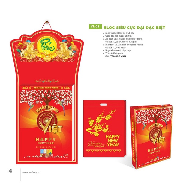 Lịch bloc đầu treo "Nhâm Dần Hạnh Phúc"