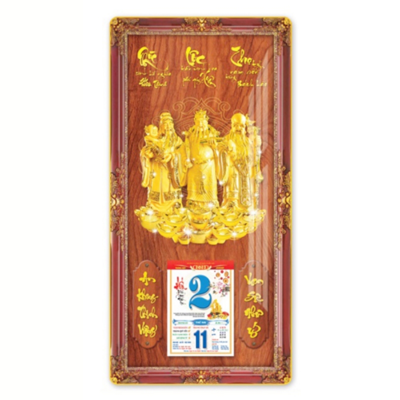 Hình ảnh Phúc – Lộc – Thọ được chạm khắc tinh xảo trên nền gỗ quý không chỉ là vật trang trí, mà còn là biểu trưng cho ba điều ước nguyện lớn lao nhất của nhân sinh: Hạnh phúc viên mãn, Tài lộc sung túc và Trường thọ an khang. Treo bộ lịch gỗ này trong không gian sống hay nơi làm việc được xem là hành động khai thông vượng khí, mời gọi sự bình an và những thành công tốt đẹp đến với gia chủ.