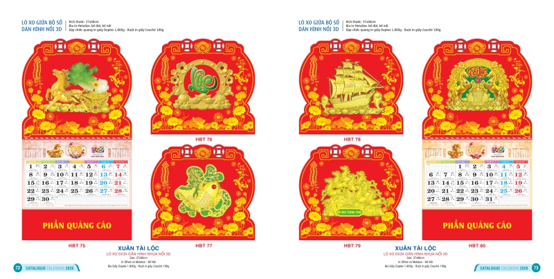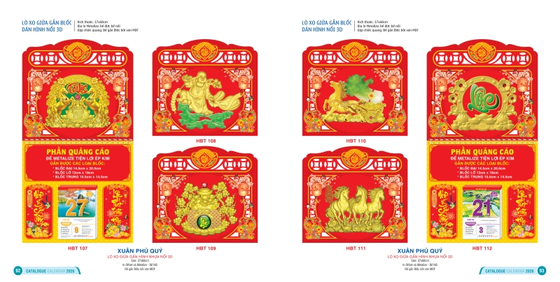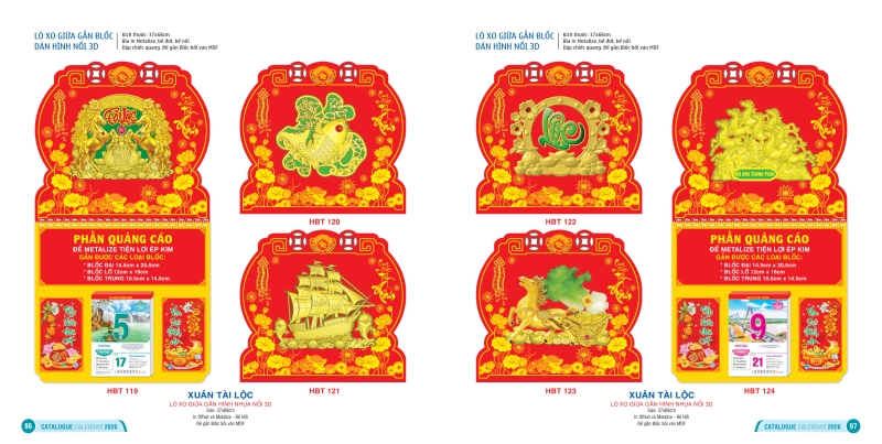 Trong bộ sưu tập lịch Tết 2026, mẫu lò xo giữa bộ số dán hình 3D nổi Hai Bà Trưng được xem là dòng sản phẩm chủ lực, chiếm vị trí đặc biệt quan trọng và cũng là dòng được sản xuất với số lượng lớn nhất của thương hiệu. Đây là mẫu lịch mang tính thẩm mỹ cao, kết hợp hài hòa giữa công năng xem ngày tháng và giá trị trang trí, giúp không gian sống thêm sang trọng, hiện đại mà vẫn lưu giữ tinh thần Tết truyền thống.