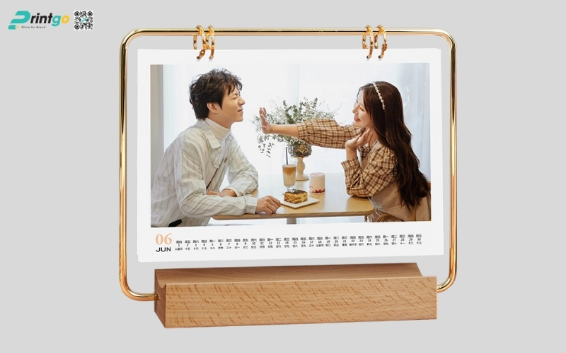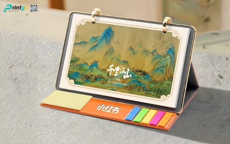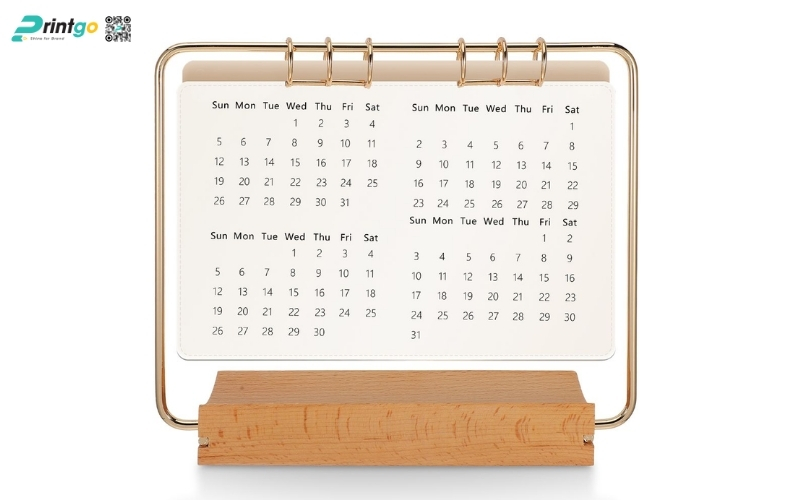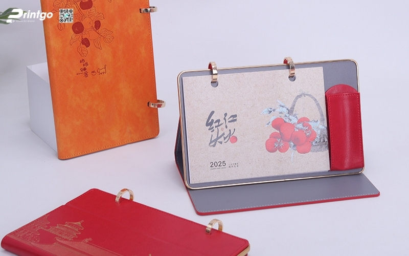 - Điểm nhấn ánh kim hoặc in nổi logo: Không chỉ tạo nét sang trọng mà còn làm nổi bật hình ảnh thương hiệu trên từng tờ lịch.