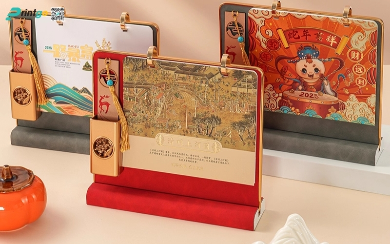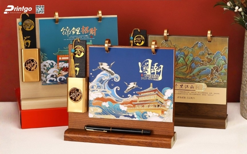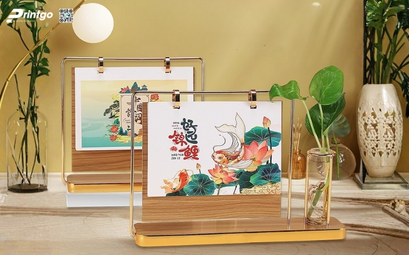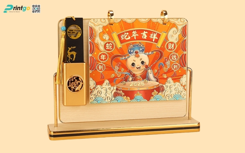 - Khung mạ vàng/ bạc: Tăng tính cao cấp, thường được dùng trong các bộ quà Tết VIP hoặc lịch trưng bày thương hiệu cao cấp.