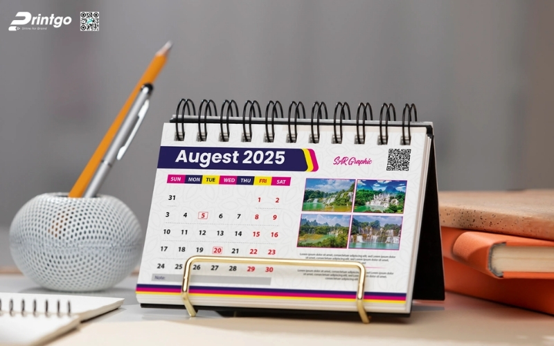 - Thiết kế đồng bộ với nhận diện thương hiệu: Đừng quên lồng ghép logo, màu sắc và slogan của doanh nghiệp trong thiết kế để lịch không chỉ là món quà mà còn là công cụ nhận diện thương hiệu hiệu quả.