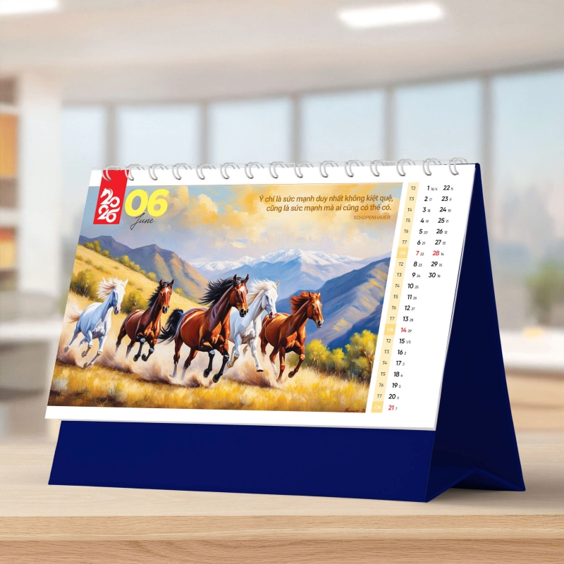 Các mẫu in lịch để bàn Mã Đáo Thành Công phù hợp sử dụng tại văn phòng, quầy lễ tân hoặc bàn làm việc, mang đến cảm hứng khởi đầu mới mỗi ngày.