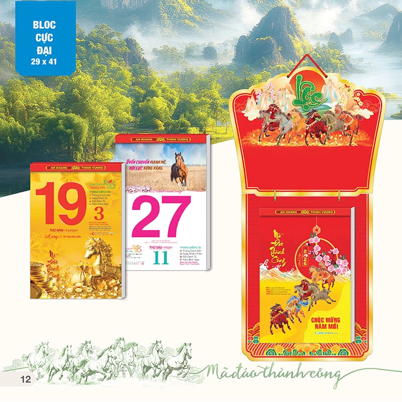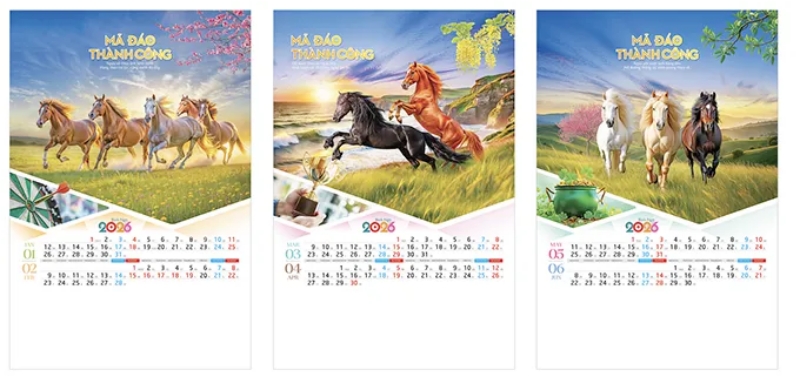 Khi được đưa vào thiết kế lịch Tết, Mã Đáo Thành Công không chỉ mang nét đẹp mỹ thuật mà còn ẩn chứa nguồn năng lượng phong thủy tích cực. Mỗi chi tiết từ thế ngựa mạnh mẽ, dải đất uốn lượn như dòng vận khí, cho đến ánh vàng kim tượng trưng cho tài lộc đều được lựa chọn tinh tế để gửi gắm lời chúc cho một năm mới hanh thông và thịnh vượng. Đối với doanh nghiệp, lịch Mã Đáo Thành Công không chỉ là món quà tri ân mà còn là thông điệp khích lệ tinh thần vươn lên, tiếp thêm động lực để mỗi hành trình phía trước đều thuận lợi, thành công và viên mãn.