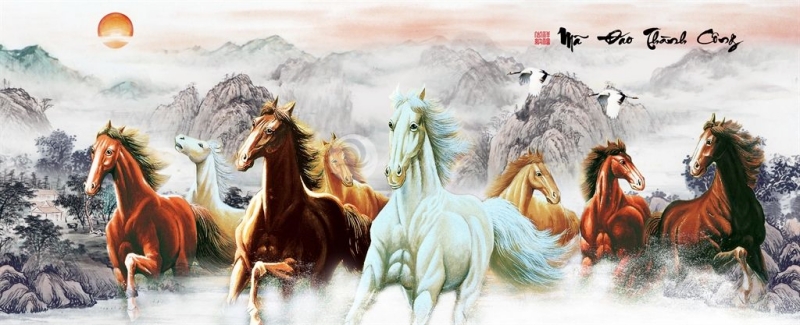 “Mã Đáo Thành Công” bắt nguồn từ điển tích Trung Hoa cổ, mang nghĩa “ngựa quay về báo tin chiến thắng”. Ngày nay, câu chúc ấy được người Việt sử dụng như lời chúc khởi đầu thuận lợi, hàm ý “ra đi gặp may, trở về thành công, vinh quang trọn vẹn”. Chính vì vậy, hình tượng đàn ngựa tung vó thường xuất hiện trong tranh phong thủy, tượng trưng, hay các ấn phẩm Tết doanh nghiệp – như một lời chúc cho một năm mới thuận lợi, thăng hoa và đầy hứng khởi.
