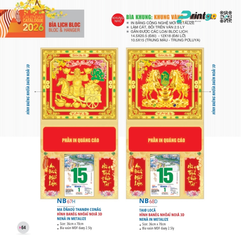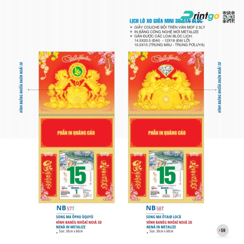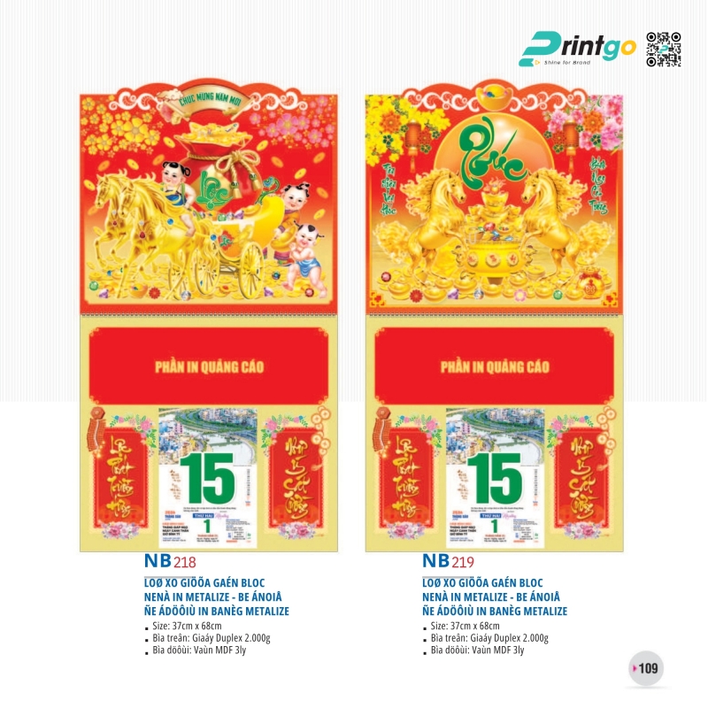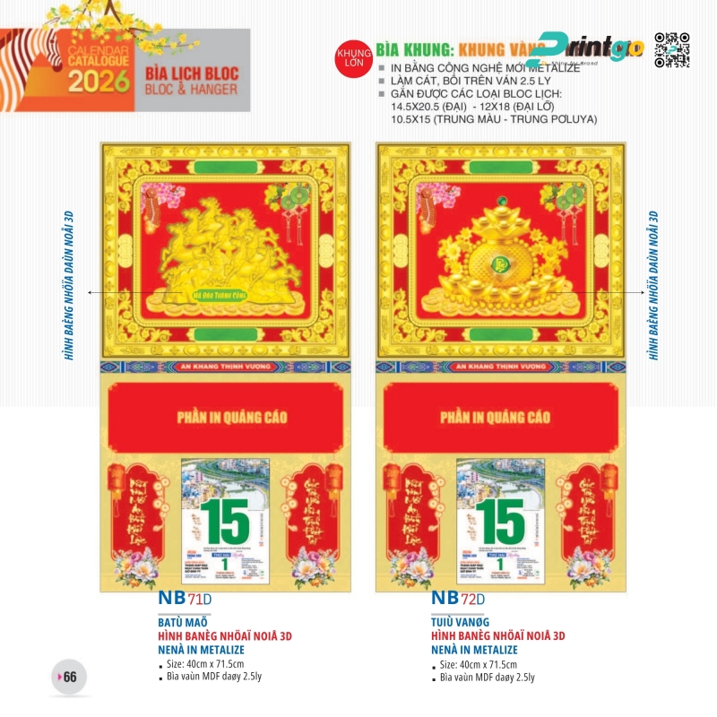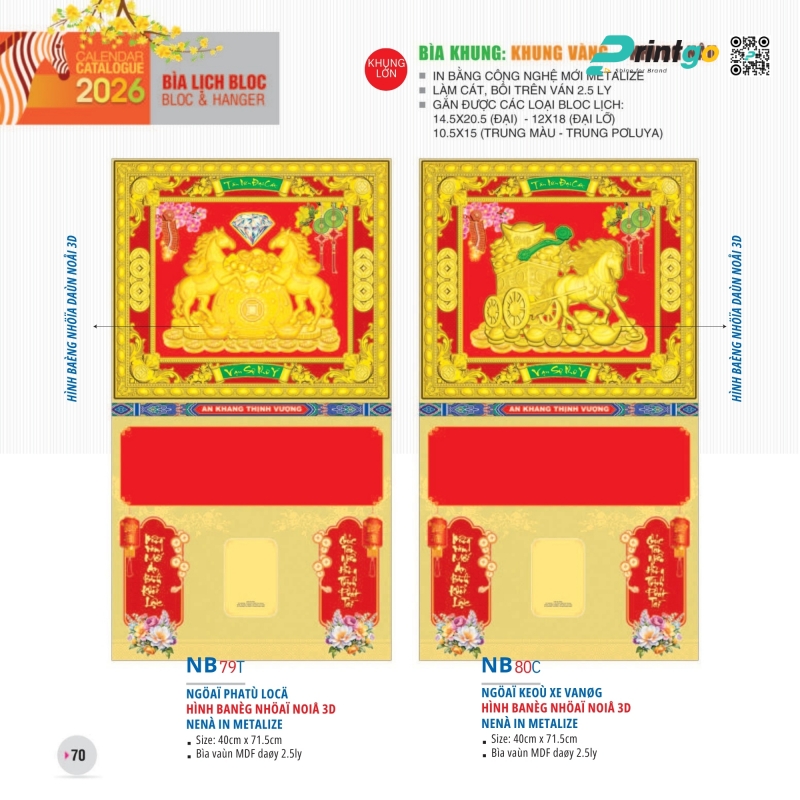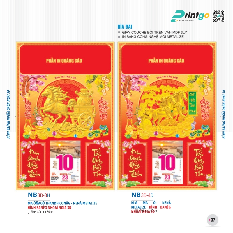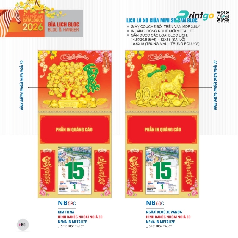 Bìa lịch: Giấy Couche bồi trên ván MDF 2.5ly – 3ly, in Metalize ánh kim sang trọng