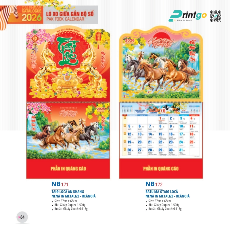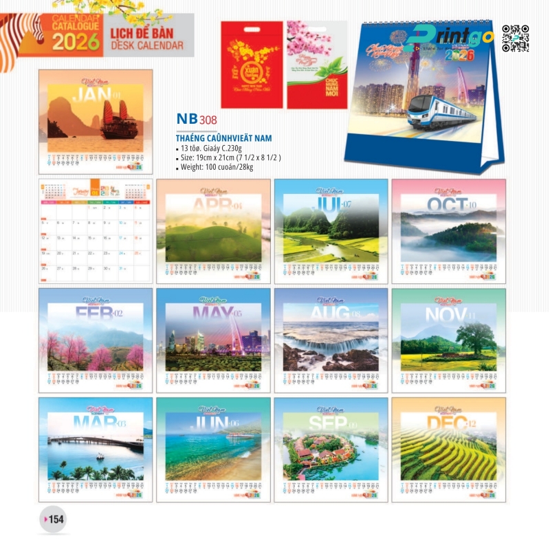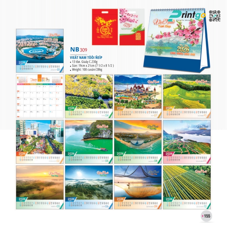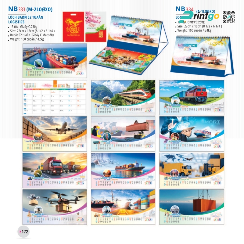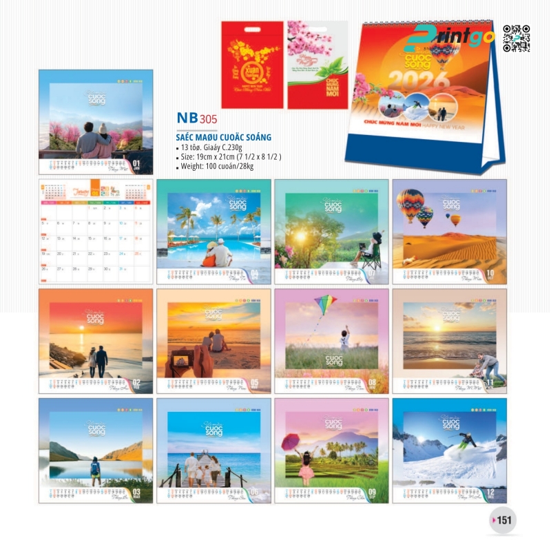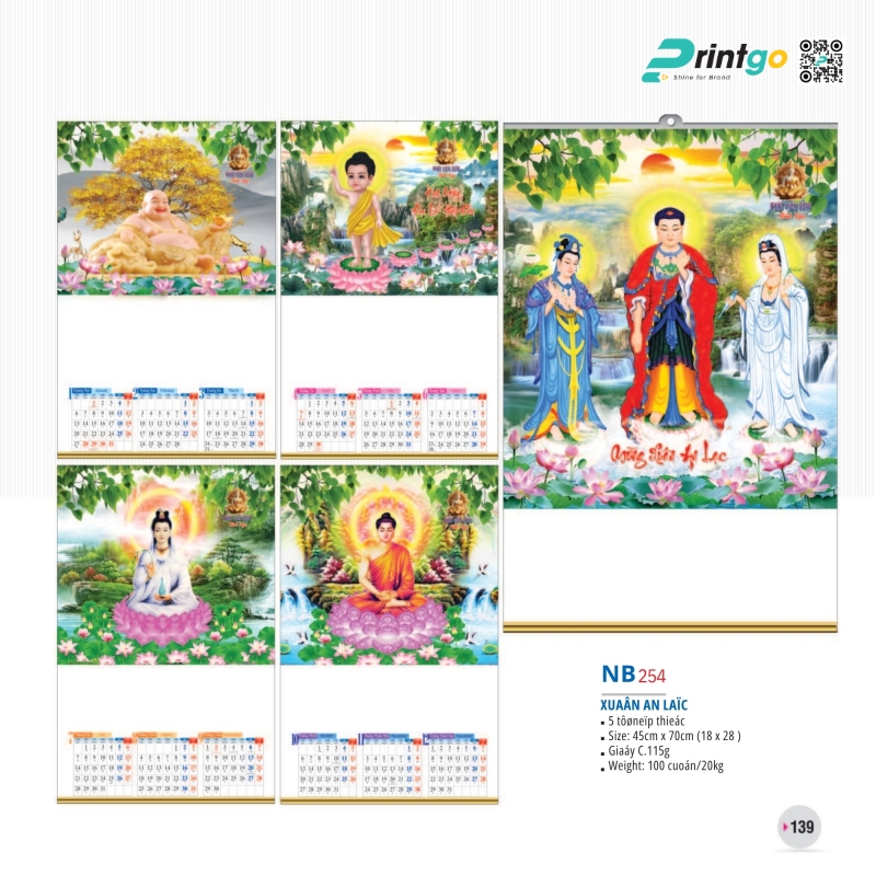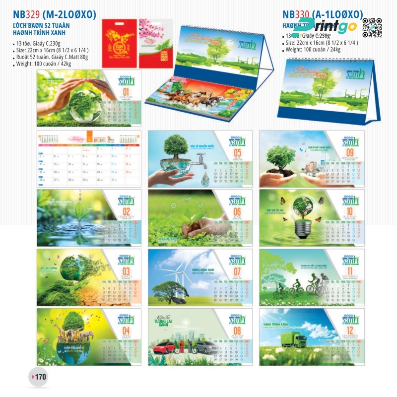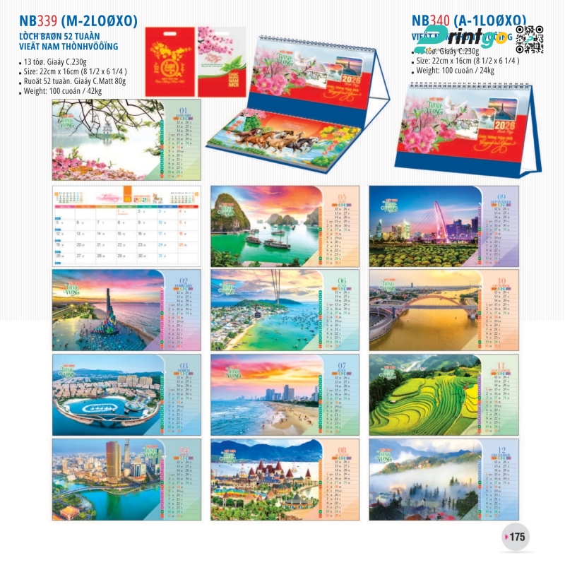 Số tờ: 13 tờ hoặc 52 tuần, in trên giấy Couche 200gsm – 230gsm cao cấp.