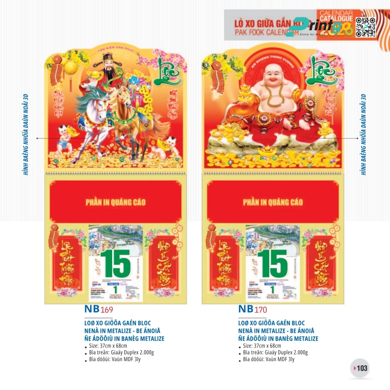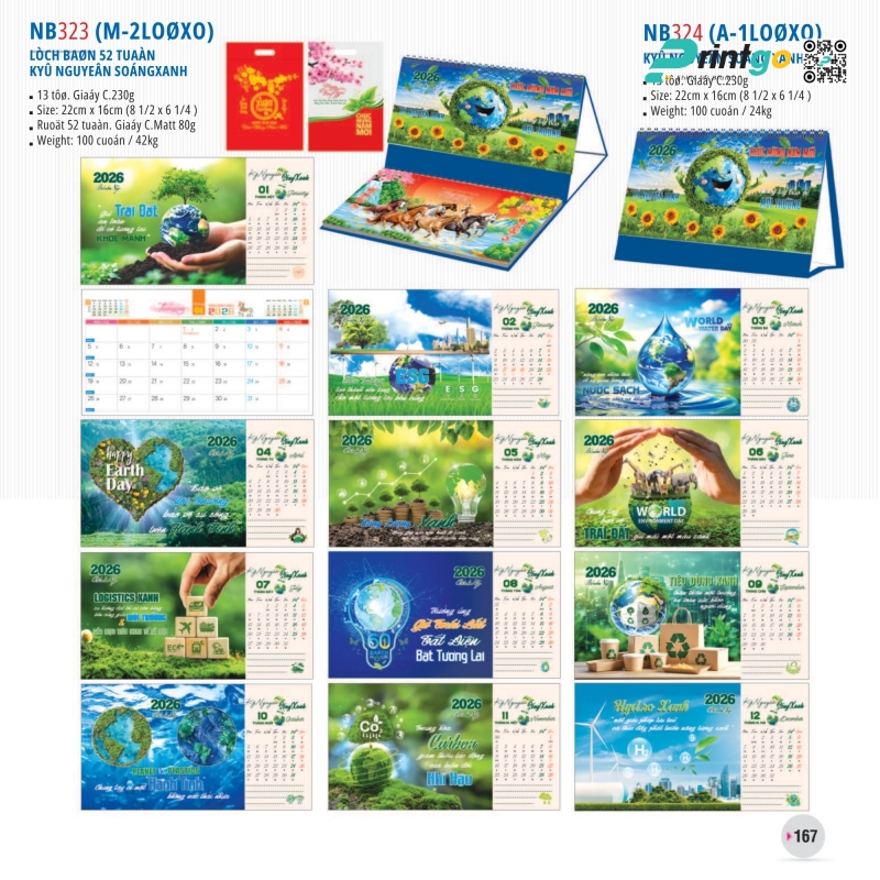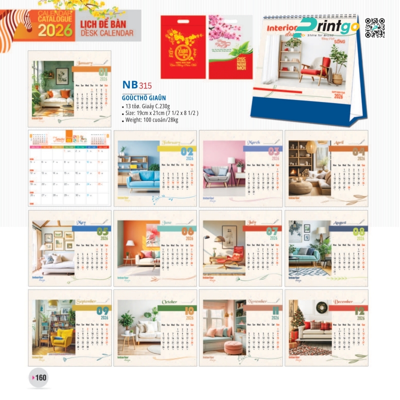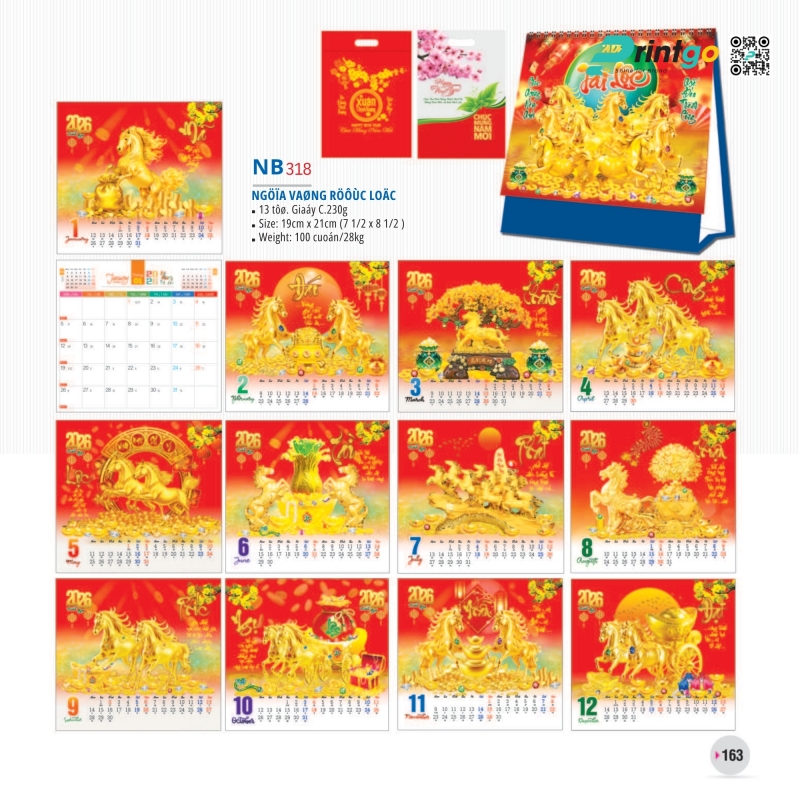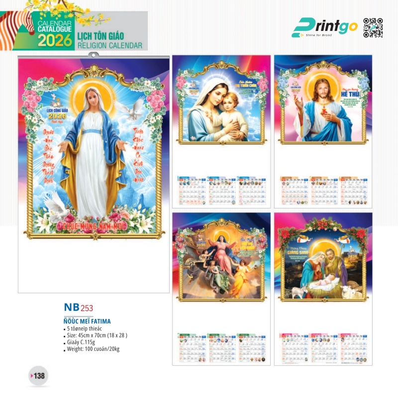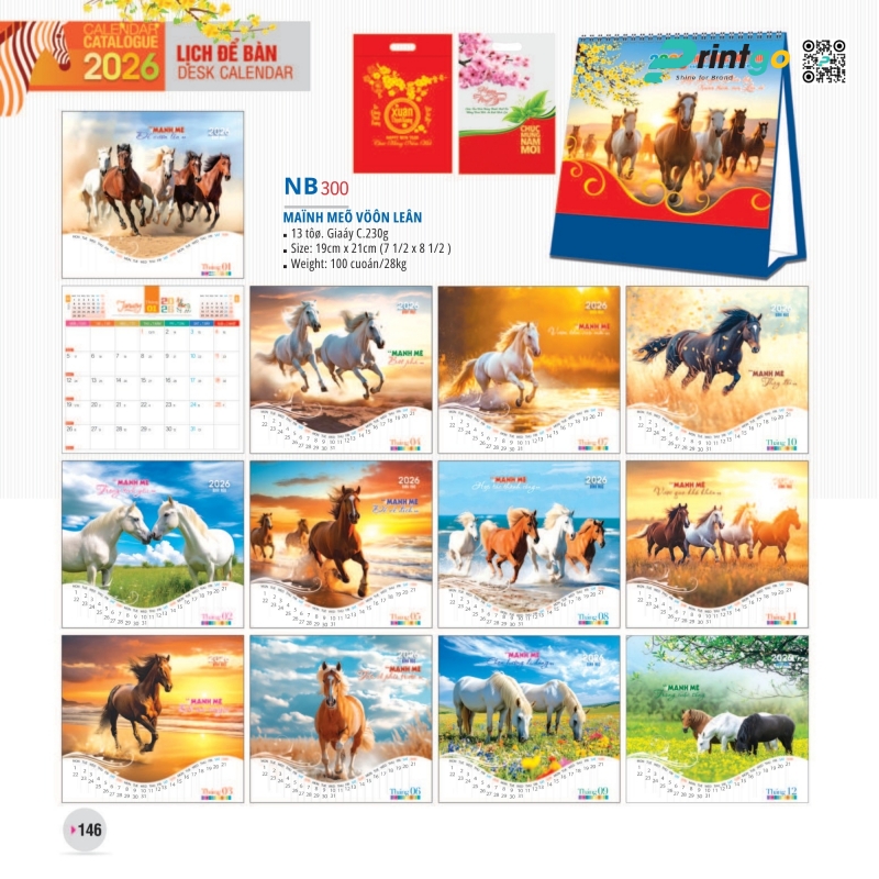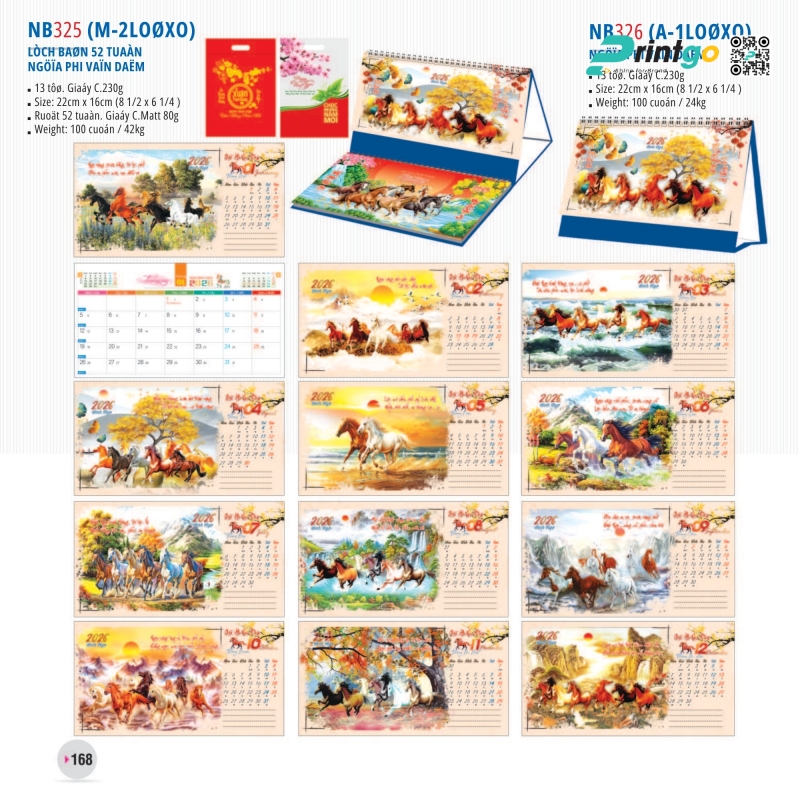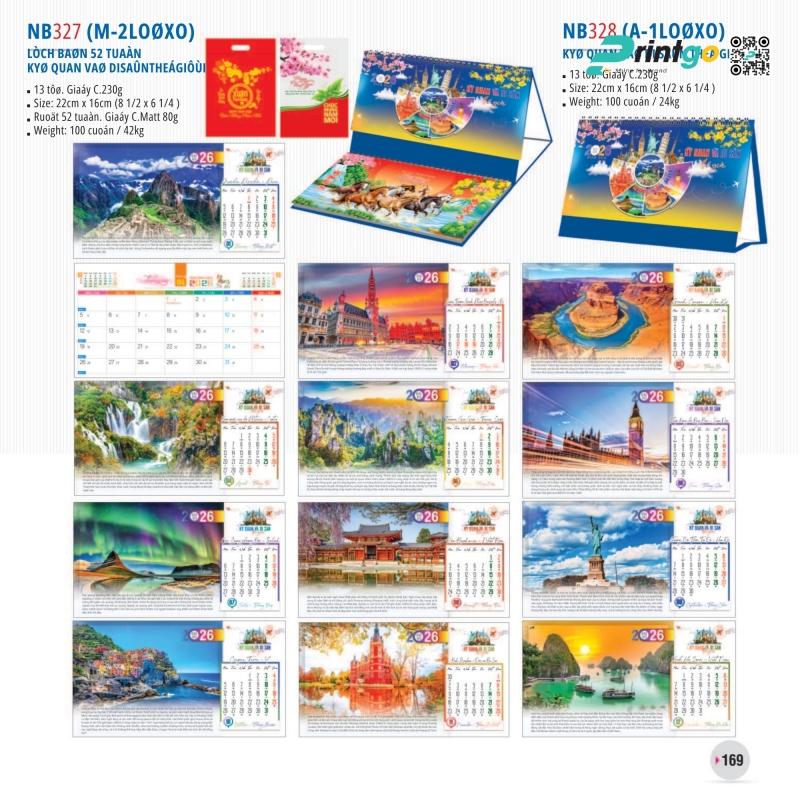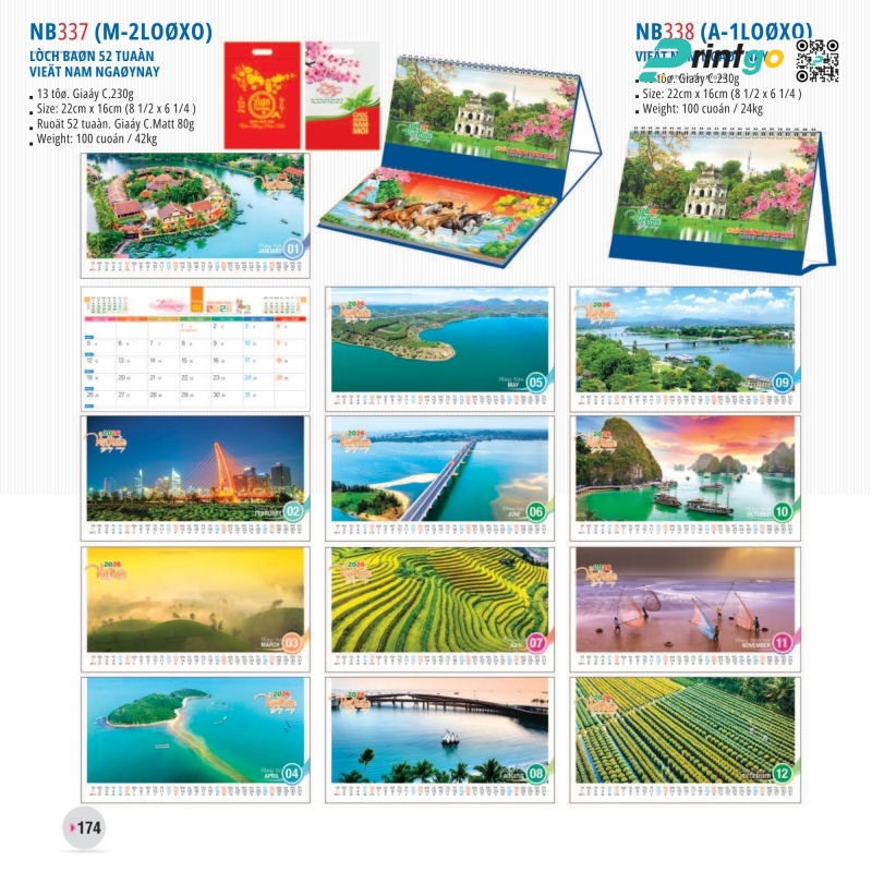 Số tờ: 13 tờ hoặc 52 tuần, in trên giấy Couche 200gsm – 230gsm cao cấp.