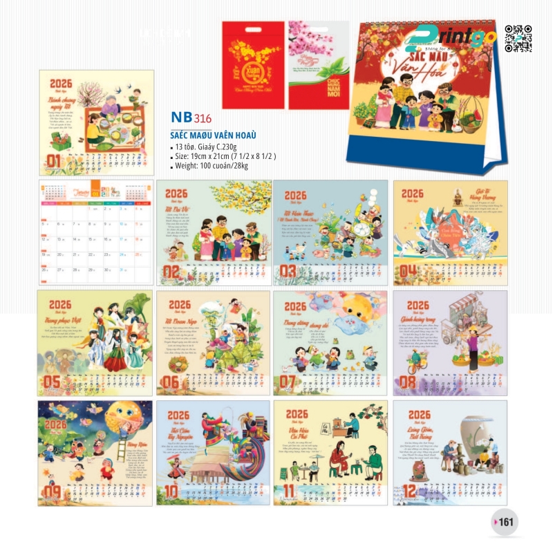 Khơi gợi cảm xúc Tết Việt: Mỗi cuốn lịch không chỉ gợi nhắc thời gian, mà còn tái hiện không khí Tết truyền thống qua hình ảnh, sắc màu và câu chữ, giúp người nhận cảm nhận trọn vẹn không gian sum vầy.