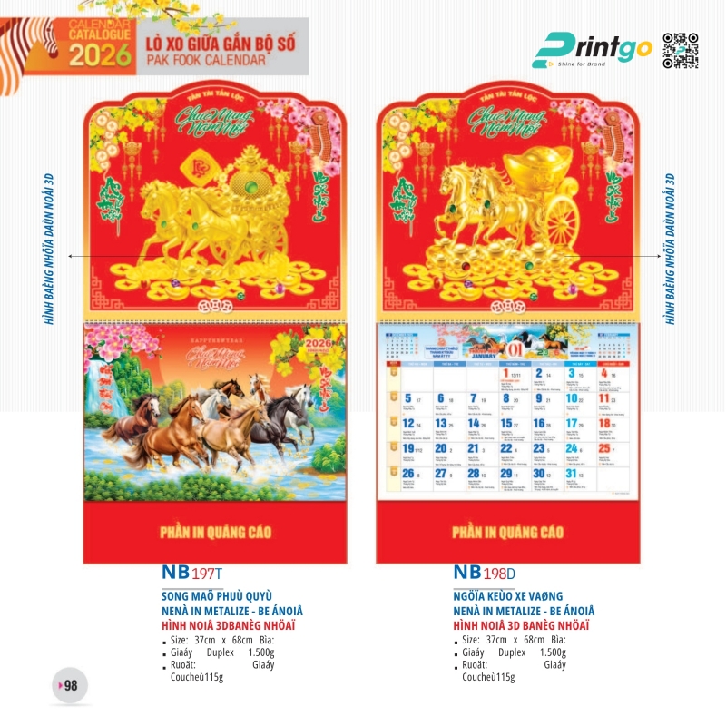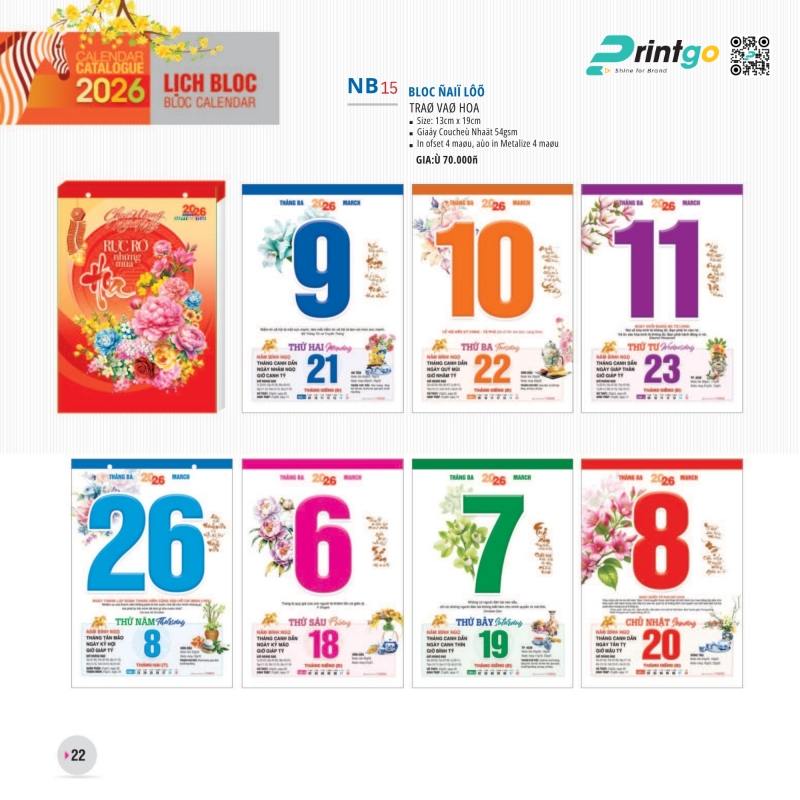 Bộ sưu tập lịch Tao Đàn 2026 không chỉ là công cụ quản lý thời gian mà còn là món quà văn hóa giàu ý nghĩa, giúp gắn kết tình thân và khẳng định dấu ấn thương hiệu. Từ lịch bloc, lịch treo tường đến lịch để bàn, mỗi ấn phẩm đều được chăm chút tinh tế, sang trọng và truyền tải thông điệp may mắn. Với vai trò phân phối chính thức, Printgo cam kết cung cấp những mẫu lịch Tao Đàn chính hãng, chất lượng cao cùng dịch vụ thiết kế – in ấn theo yêu cầu, đáp ứng trọn vẹn nhu cầu của mọi doanh nghiệp và gia đình. Hãy liên hệ ngay với chúng tôi ngay hôm nay để sở hữu catalogue lịch Tao Đàn 2026 mới nhất và lựa chọn những ấn phẩm Tết độc đáo, ý nghĩa nhất!