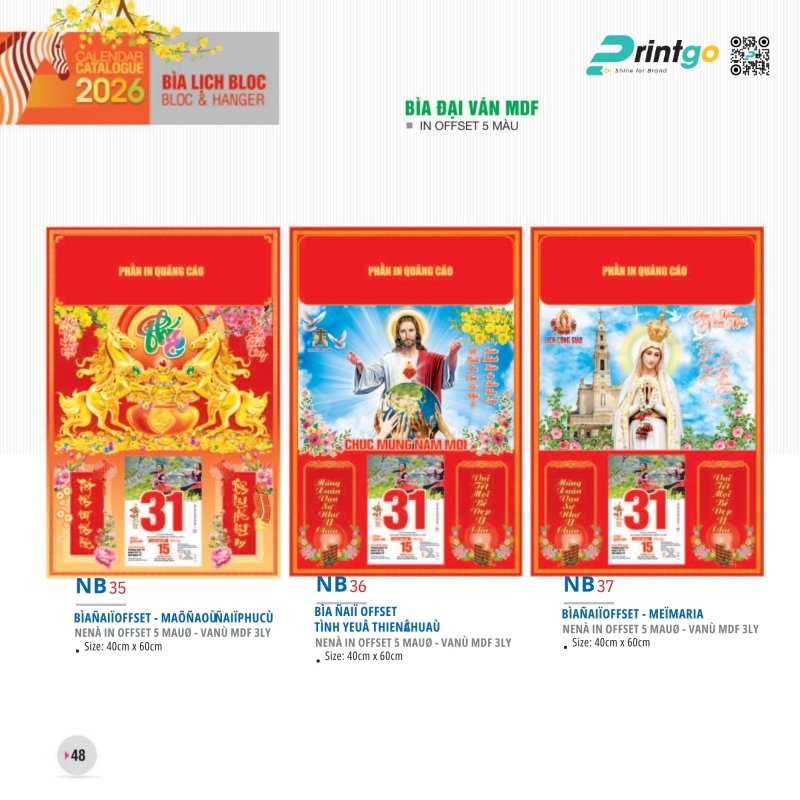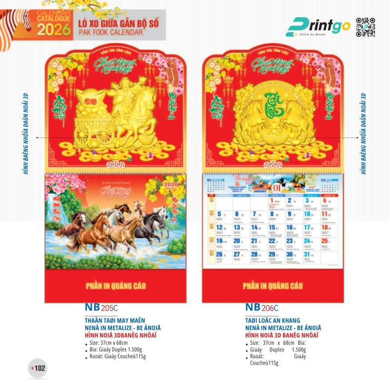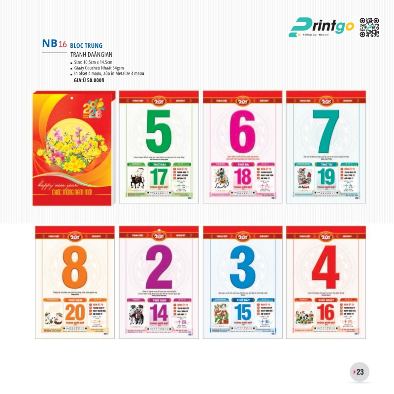 Chất lượng in ấn vượt trội: Sử dụng giấy cao cấp, màu sắc in sắc nét, bền đẹp suốt 365 ngày.