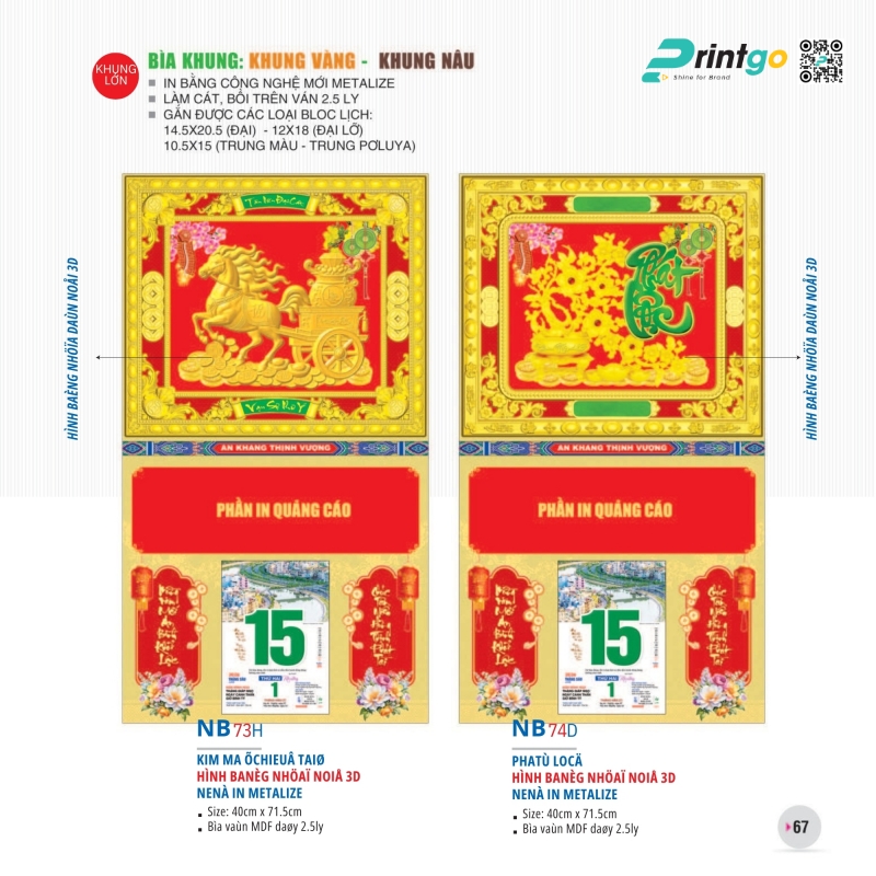 Khung phù điêu là dòng lịch bloc cao cấp, được thiết kế cầu kỳ với họa tiết bế nổi 3D, mang đậm giá trị thẩm mỹ và phong thủy. Đây là lựa chọn sang trọng để trưng bày trong gia đình, văn phòng hoặc làm quà biếu Tết.
