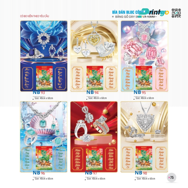 Kiểu dáng: Đa dạng từ bìa treo khổ lớn, bìa gắn bloc, đến bìa lò xo giữa, phù hợp làm quà tặng cao cấp.
